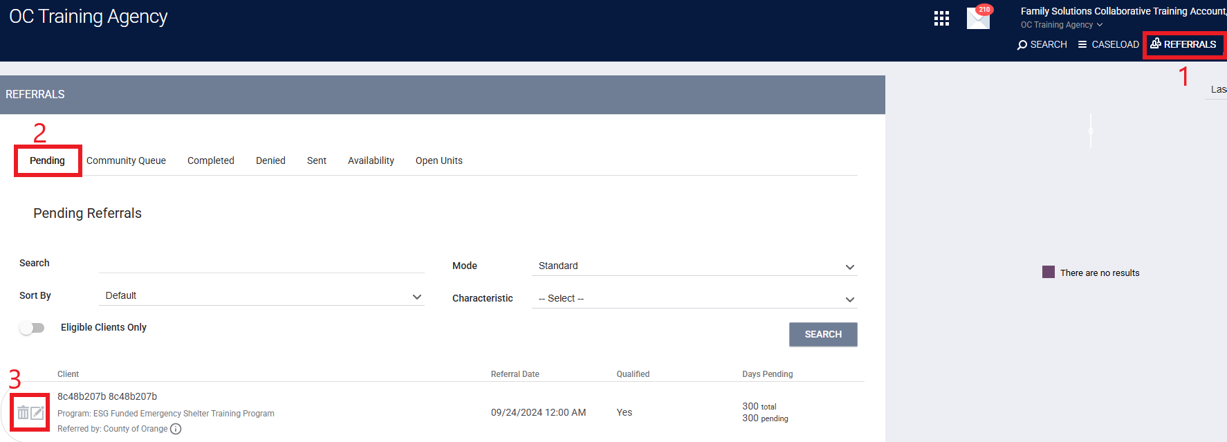 Step 1: Within the Referrals tab, select on Pending then click on edit next to the household you will be denying.